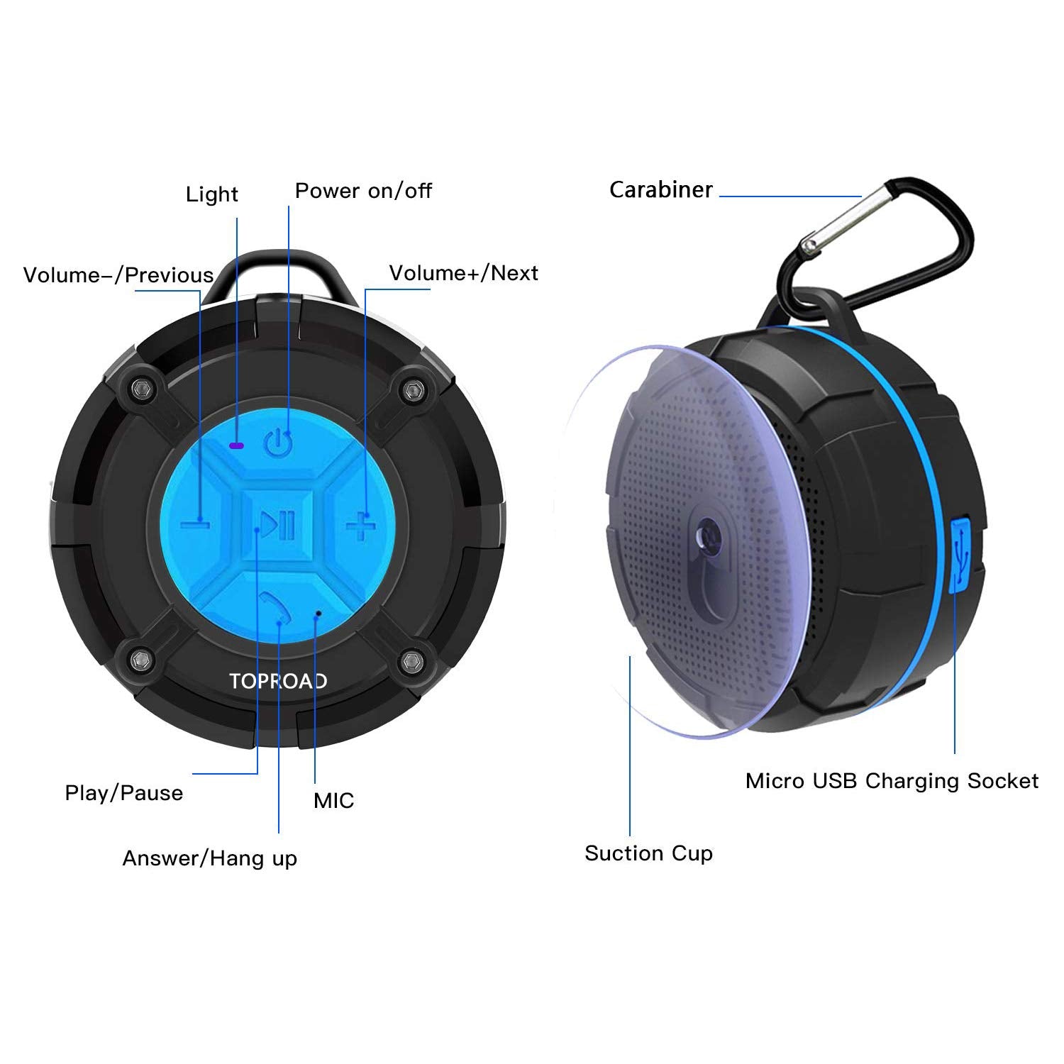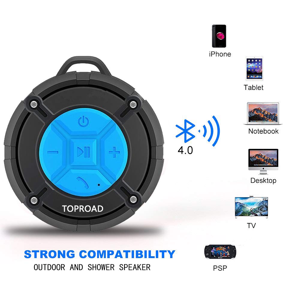 [2019 Version] Portable Shower Speaker,TOPROAD IPX7 Waterproof Wireless Outdoor Speaker with HD Sound,2 Suction Cups,Built-in Mic,Hands-Free Speakerphone for Bathroom, Pool, Beach, Hiking, Bicycle
