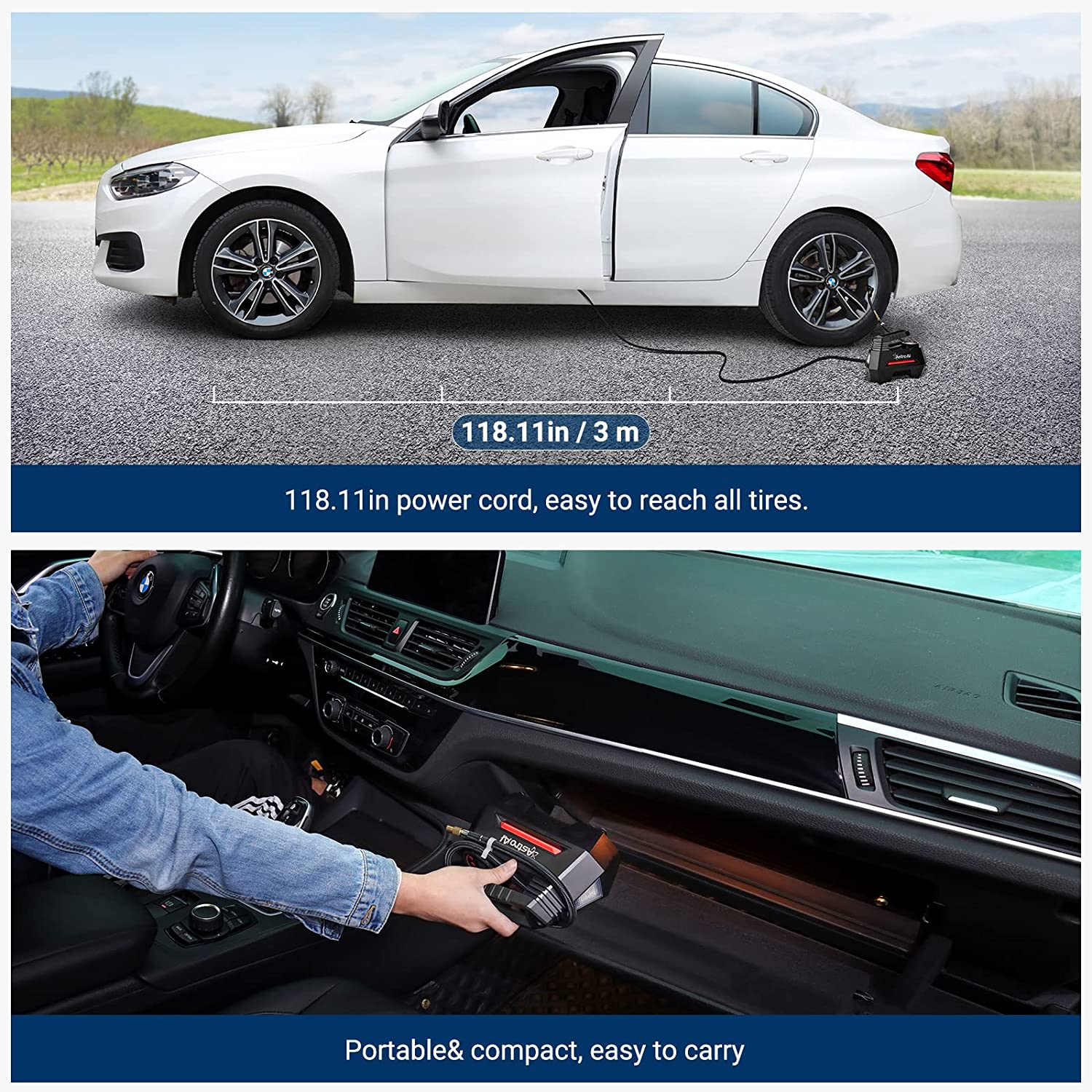 - FAST INFLATION & ADVANCED ACCURACY: High-quality materials were sourced for this tire inflator as it can pump up your car's tires with 35 L/Min, it can inflate the 195/55/R15 car tire from 0 to 35psi under 5 minutes. Professionally calibrated to always return a reading within 1.5% of the pressure of your tire. Please NOTE that after 10-15 minutes of continuous use, let the air compressor rest and cool for an equal amount of time at a minimum before continuing use