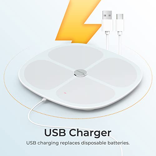 - Full Body Composition Analysis: Built from the state of the art technology, the body fat scale provides accurate data for different body parameters including weight, water, protein, bone mass, body fat percentage, skeletal muscle, muscle mass, BMI, BMR, metabolic age, subcutaneous fat, fat-free body weight, visceral fat, and lean body mass full body analysis.