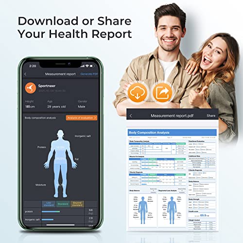 - Health Report: Using the reports generated from your body analysis, the Sportneer smart scale will offer personalized health recommendations which include exercises and professional courses. This makes it easy for you to make the best health decisions and to help you achieve the necessary health goals.