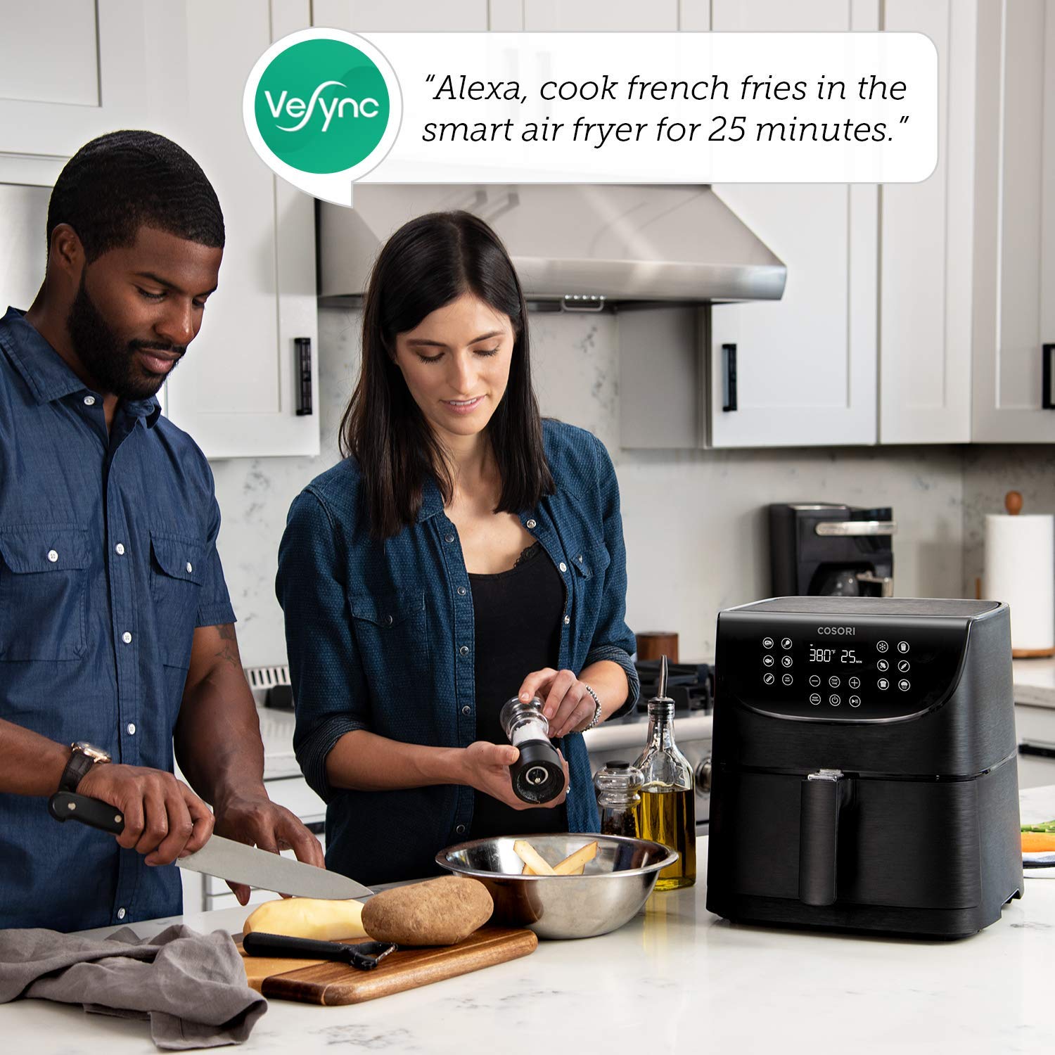- ALEXA and WIFI ENABLED: - The COSORI Smart WiFi air fryer provides you the ability to control your air fryer by using the Vesync APP or through voice with Alexa from anywhere. Now, you will have total air fryer control in the palm of your hands to cook, schedule, adjust and monitor the progress of your meals. Get a head start on dinner by scheduling a cook time 4 hours in advance