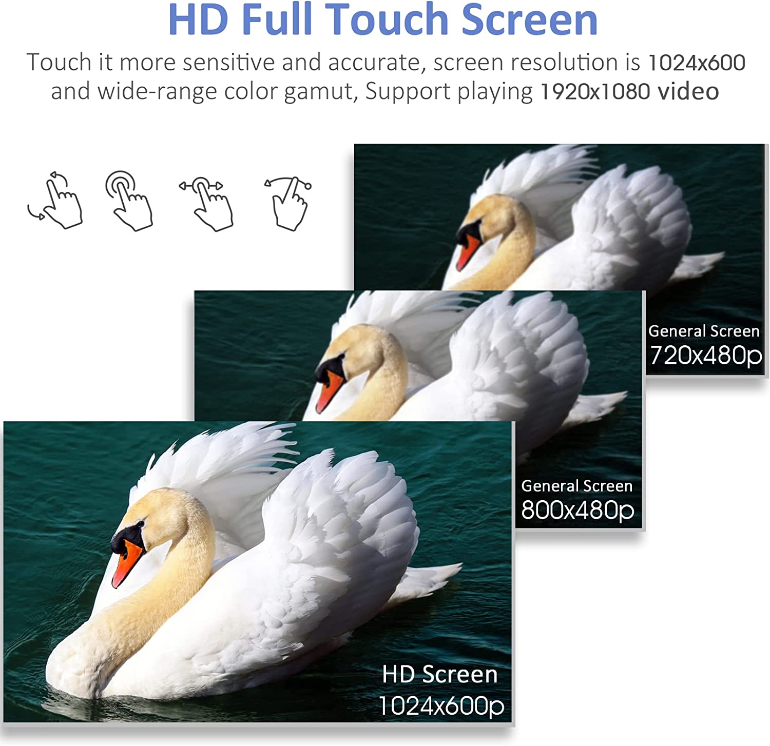 - ❷【Updated 7 Inch HD Full Touch Screen】: Our bluetooth car stereo is equipped with 7 inch LCD high definition touch screen, touch it will be more sensitive and accurate, your fingertip can easily operate on the screen. the screen resolution is 1024*600 and support 1080P video playback, wide-range color gamut and meet your visual experience.