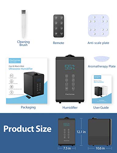 Elechomes SH8820 Humidifiers, 5.5L Top Fill Warm and Cool 5.5 Liter, Black