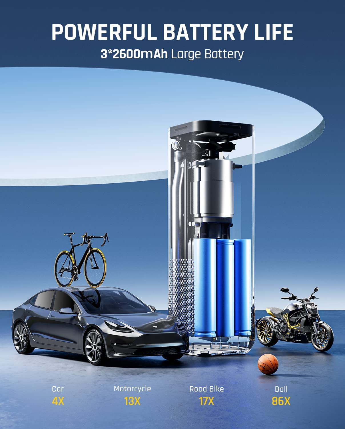 - Powerful Battery Life: Come with the rechargeable 7800mAh battery, X8 apex does not require an external power supply while working and can provide a wireless continuous runtime up to 40 mins. Perfect for inflating cars, motorcycles, bikes, balls, and other inflatables, including new-energy vehicles like Tesla.