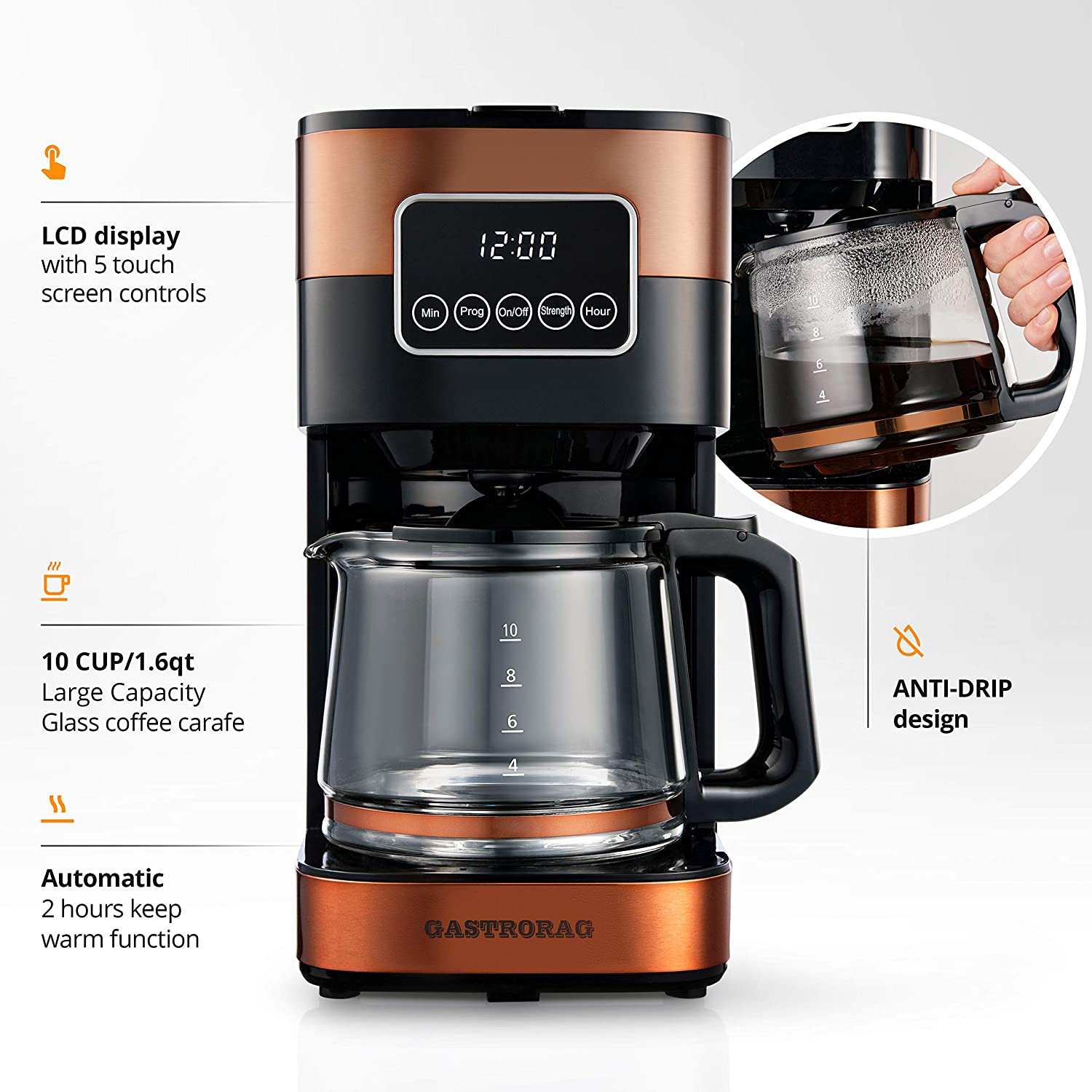 Gastrorag 10-Cup Drip Coffee Maker - Programmable Machine with Copper