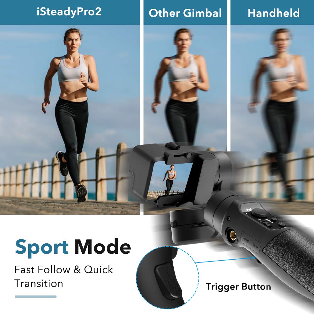 - ✈【Updated sports mode & perfect balance updated sports mode allows you to shoot incredibly smooth shots even while going to extremes like running up & down stairs, cycling outdoors or traveling over rugged terrain. High performance motor realizes axis overlap & low angle shoot like a breeze. 3 axe's Variable speed adaptation is extremely sensitive to hand movements. With this design, Hohm Gamble stabilizer transforms hard-to-watch, shaky footage into hypnotically smooth, professional footage.