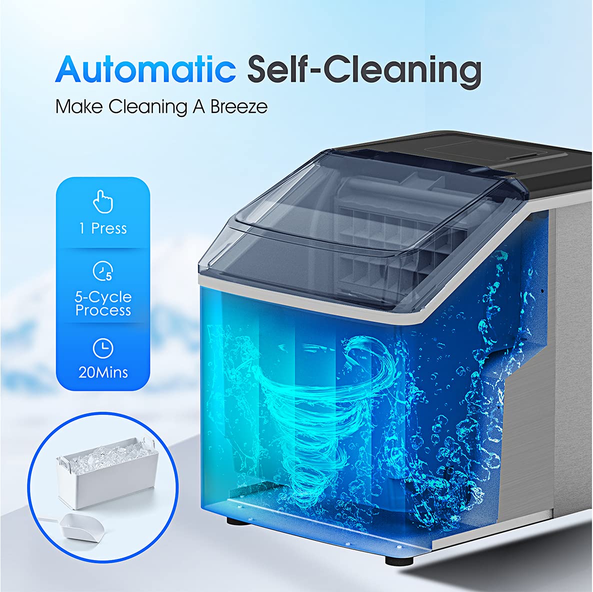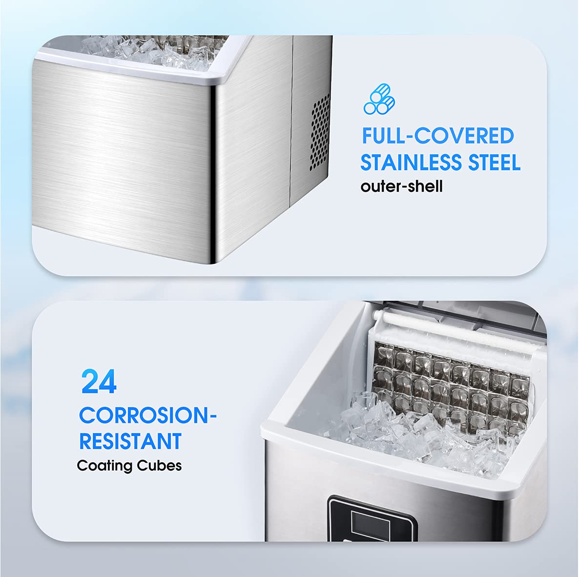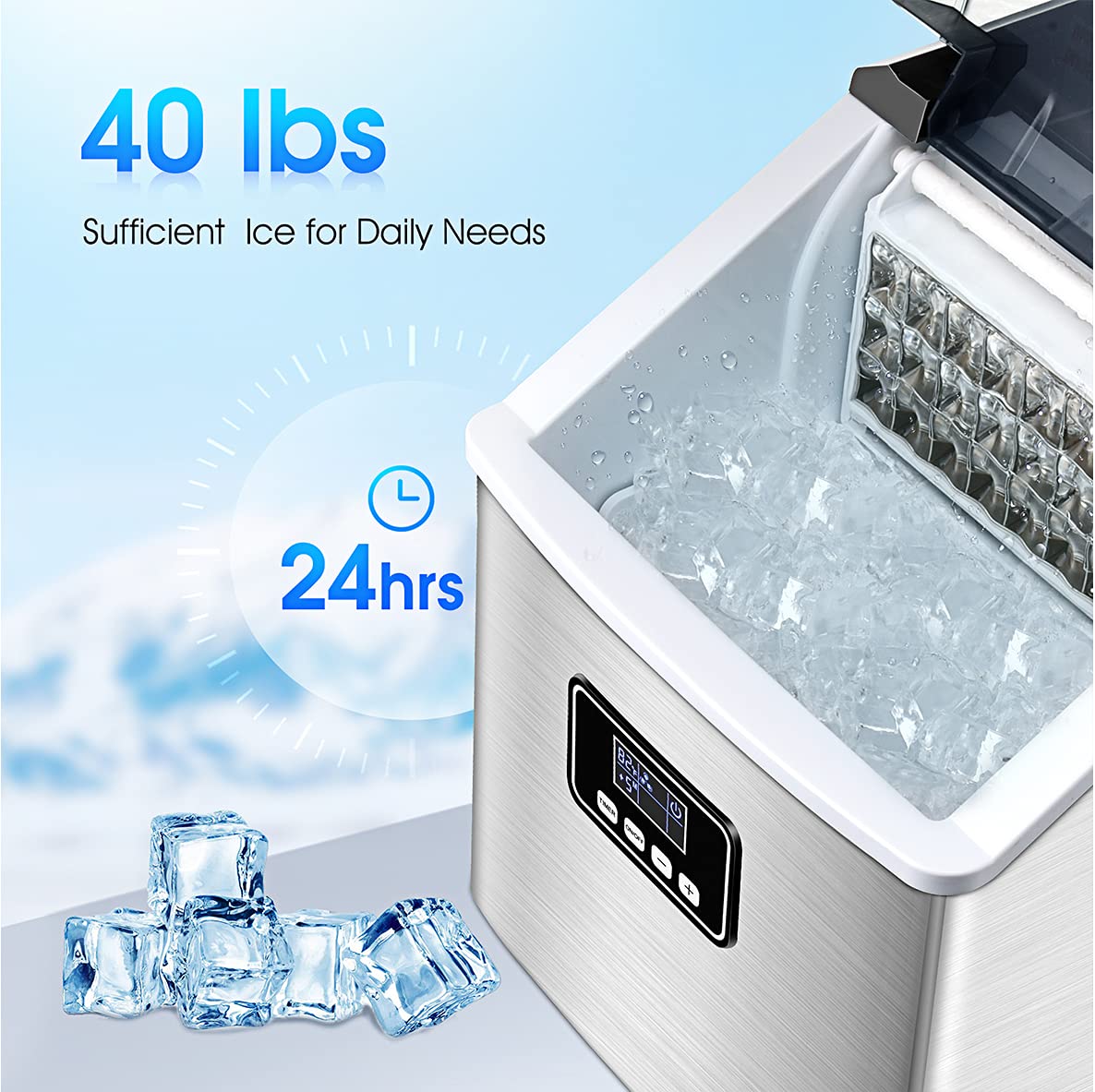 Ice Maker Machine Countertop, 40Lbs/24H Auto Self-Cleaning, 24 Medium, silver