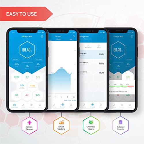 - ENJOY TRACKING YOUR FITNESS JOURNEY: This smart body composition scale tracks 13 key fitness metrics, including Body Weight, Body Fat Percentage, Water, Muscle Mass, BMI, BMR, Bone Mass, Skeletal Muscle, Fat-Free Body Weight, Subcutaneous Fat, Protein, Metabolic Age and even Visceral Fat directly on your smartphone.