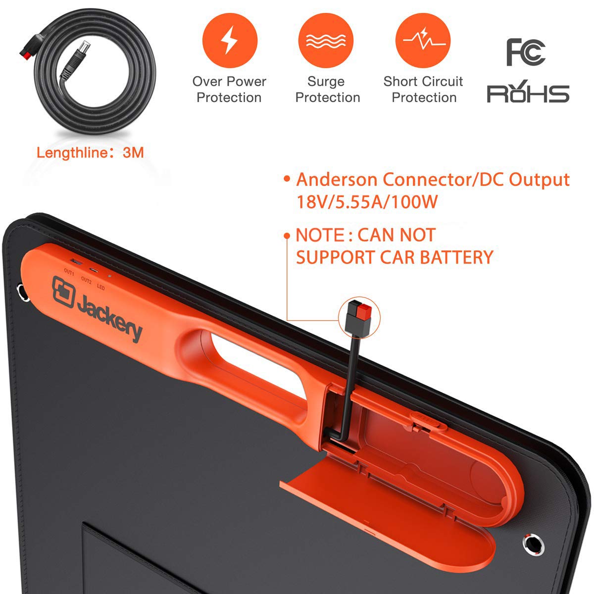 - WHAT'S INCLUDED: 1*Jackery SolarSaga 100W Solar Panel, 1*0.3M cable, 1*3M extension cord.