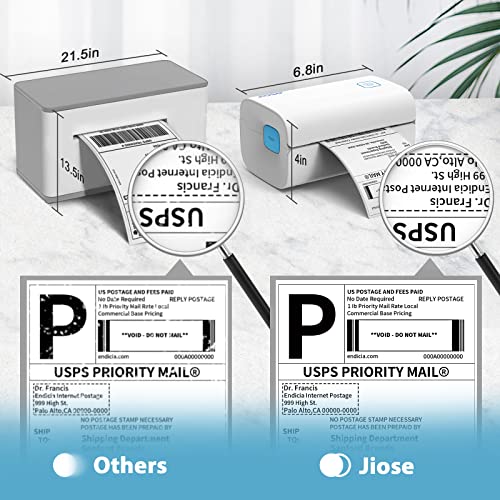 - ✅【Automatic Label Identification】Jiose USPS shipping label Printer automatically catch the first label, detect the size, gap and characteristics of your label and position it at tear-off line. No piece of label paper is wasted. Suitable for any thermal direct labels from 1.57" ~ 4.25" wide
