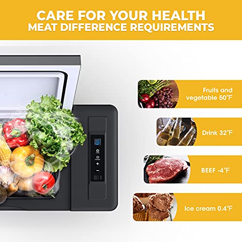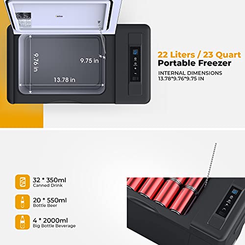- ❄️ENJOY YOUR TRIP: The portable car fridge is easy to carry than other large-capacity fridges, while 23Qt (22L) is a suitable quality to store enough food in an emergency. External dimension: 22.68*12.60*12.97inches.