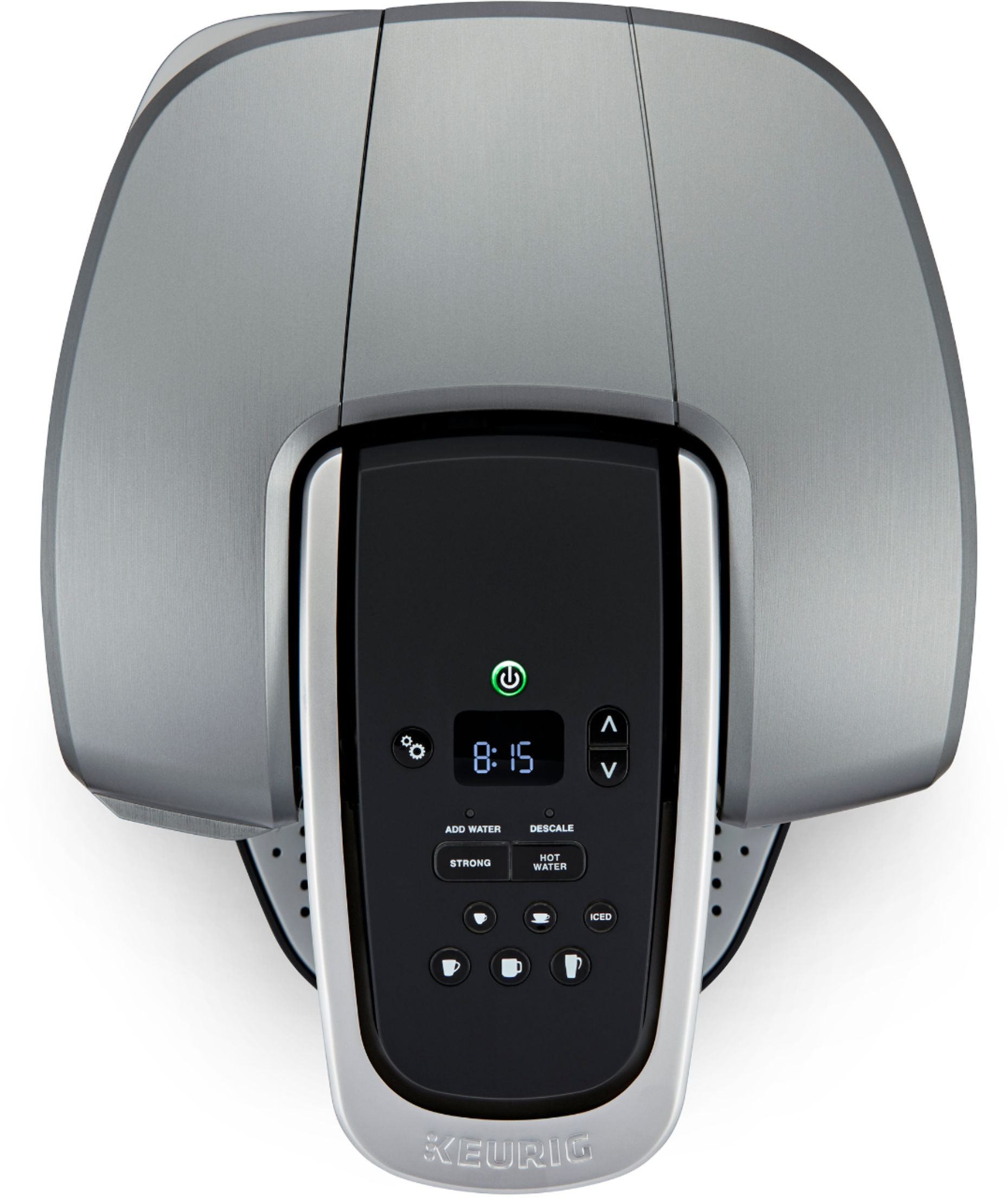 Make a cup of coffee in less than two minutes with this sleek, brushed-metal Keurig K-Elite Single Serve Coffee Maker. Five brew-size selections let you choose how much to make, while Strong brew and Iced options mean you can enjoy a bold morning cupor a refreshing afternoon beverage with the touch of a button. This Keurig K-Elite coffee maker shuts off two hours after its last brew to ensure safety and energy savings.