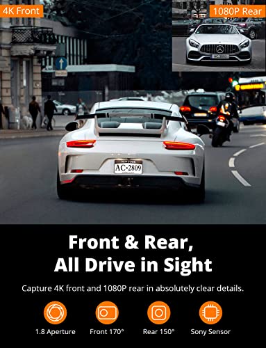 - 【Never Lose Driving Footage】- Supports up to 256GB TF card (not included) which is enough for recording 4K videos. Combined with loop recording function so you never lose any crucial evidence. That means 24-hour protection for your car. To fully meet the recording and playback of 4K resolution video, please use high-endurance(at least U3 level) micro SD card. We recommand SAMSUNG 256GB U3 micro SD card
