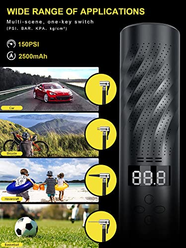 LENDOO Cordless Tire Inflator Portable Air Compressor Electric Air Pump for Bike Motorcycle Car Tires, 150PSI 2500mAh Power Bank with LCD Display & Led Emergency Light (Black)