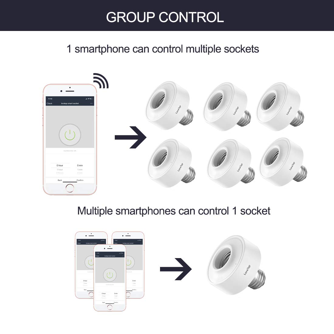 LoraTap Smart WiFi Bulb Socket E26 2 Pack Wi-Fi LED Light Lamp Timer Holder...