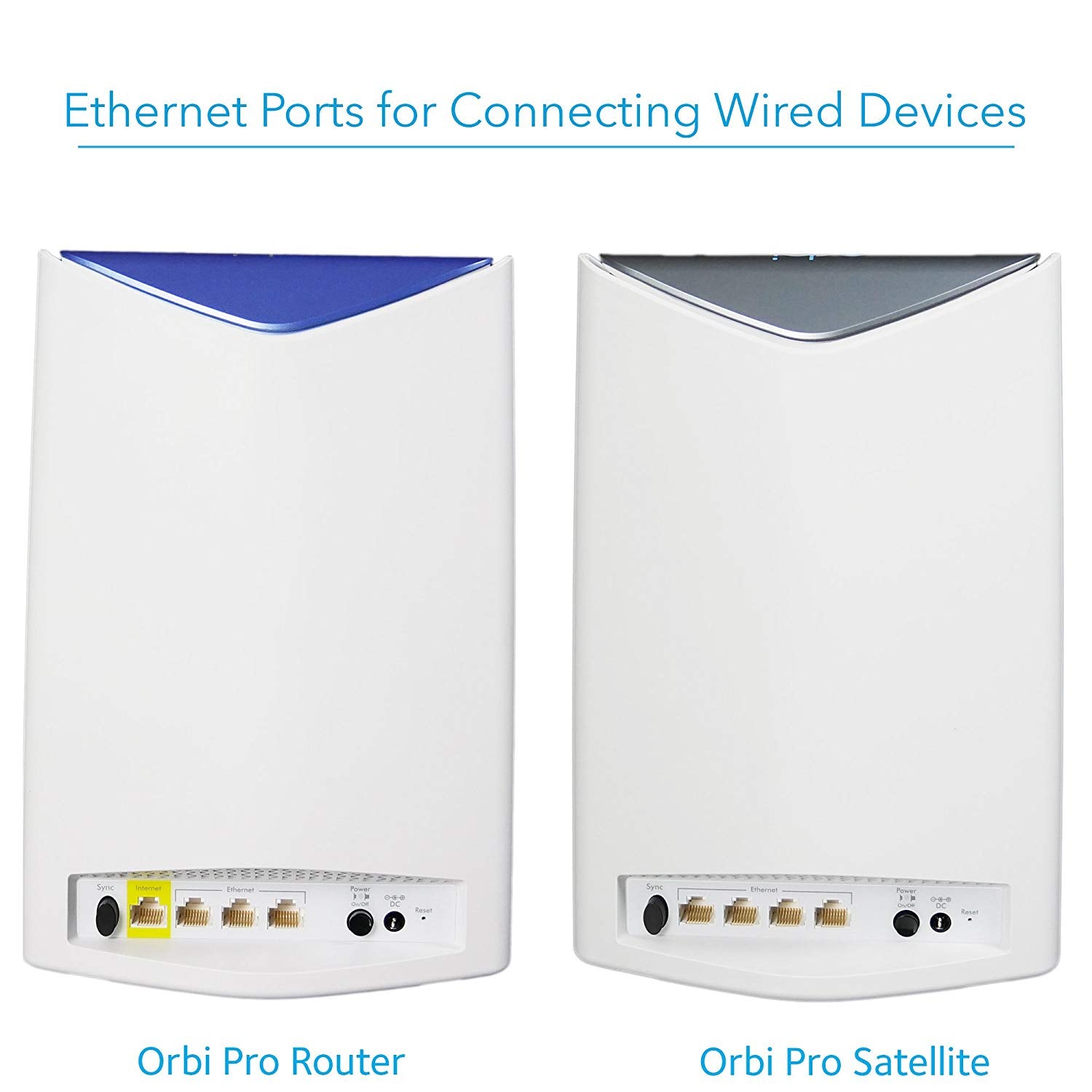 Blanket your growing business with secure, reliable, and blazing fast Wi-Fi with Orbi Pro. Orbi Pro works for small offices, cafes, retail, and more. Orbi Pro's Tri-band AC3000 Wi-Fi creates a fast, dedicated wireless connection between the Orbi Pro Router and Satellite similar to a wired Ethernet connection without having to run an Ethernet cable between them. Long-Form Copy (100 Words) Orbi Pro delivers business-class seamless, high-speed Wi-Fi that is affordable and easy to install, without added infrastructure and deployment costs. It's the perfect Wi-Fi solution for small businesses, cafes, retail, small offices, and more. Engineered with the latest in Wi-Fi technology, Orbi Pro provides performance to keep your company, employees, and customers connected. Utilizing innovative Tri-band Wi-Fi, Orbi Pro creates a dedicated wireless backhaul for data communication between the router and the satellite that maximizes the network speeds to all connected devices and eliminates the need to run long Ethernet cables to Wi-Fi access points. This system enables 3 pre-defined distinct Wi-Fi networks: the Administrative network for business connectivity, an employee network for Internet access, and a Guest network for visitors to enjoy the Internet.
