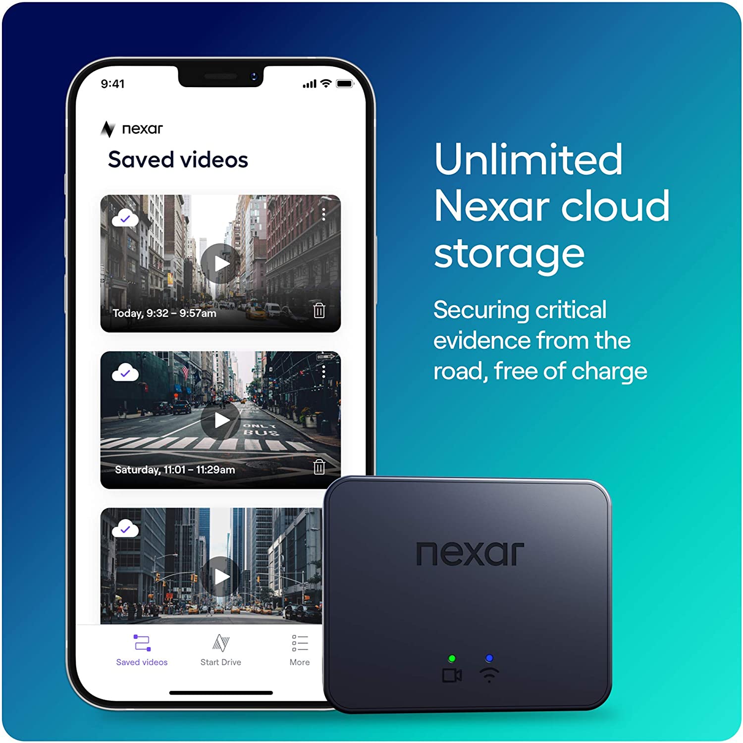 - 【Smart Detection and Free Cloud Backup】The camera detects critical situations on the road (like collisions or sudden brakes) and saves them as short clips on the Nexar app. These clips are also automatically backed up to your free and unlimited Nexar cloud account.