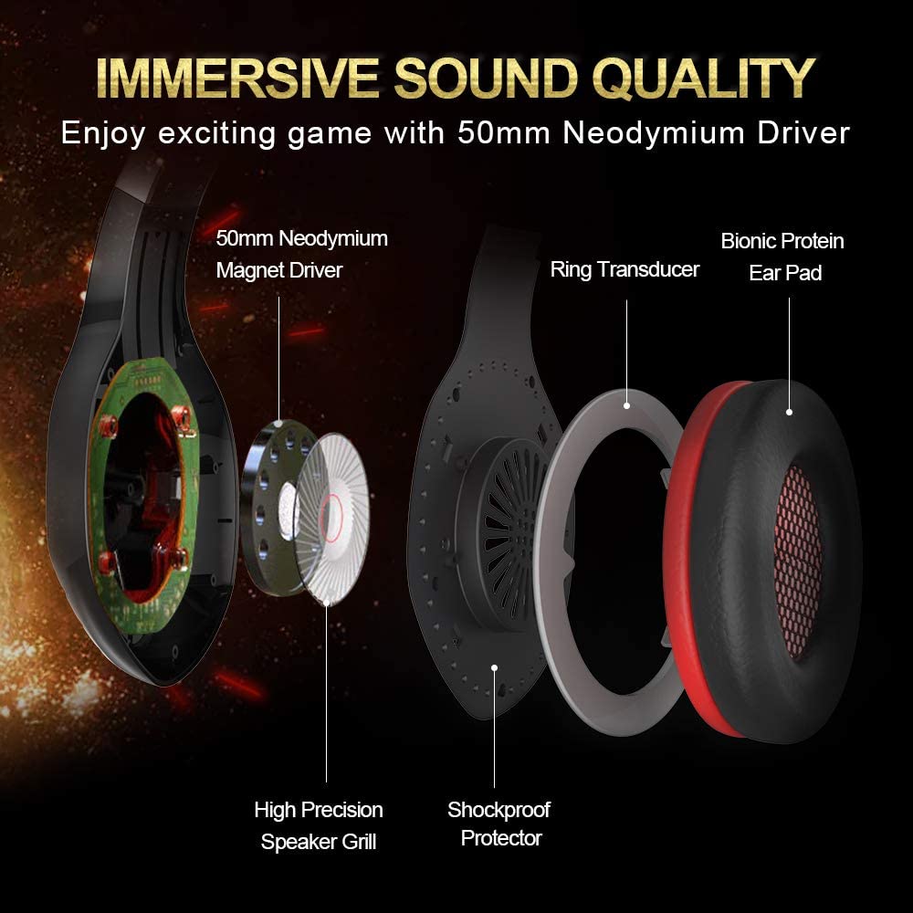 NPET HS10 Stereo Gaming Headset for PS4, PC, Xbox One Controller, Noise Red