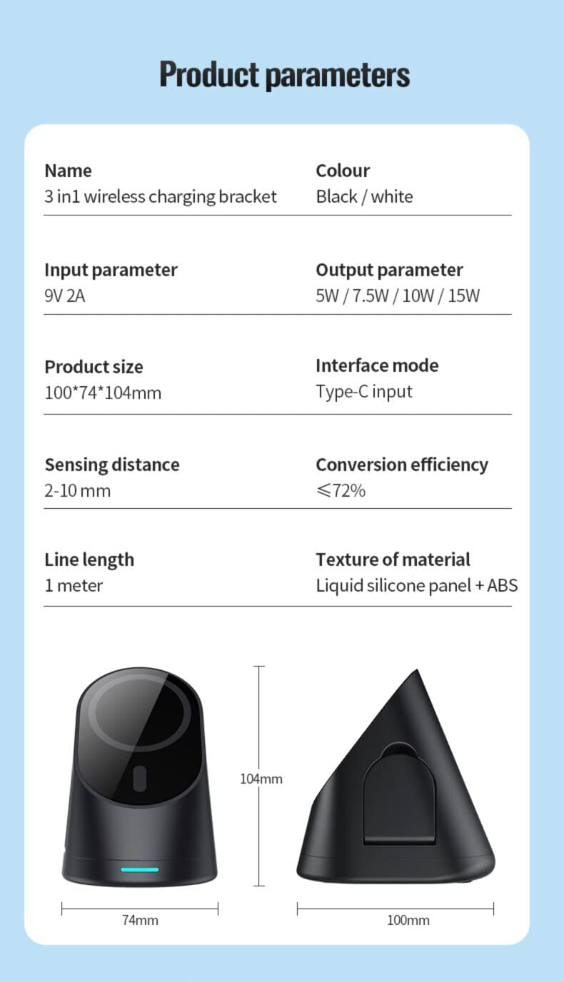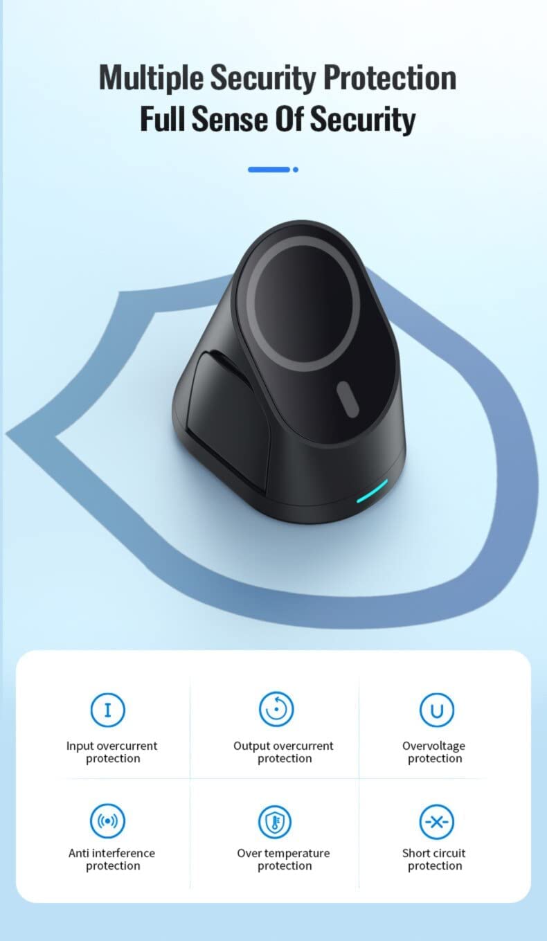 - [ FOLDABLE & PORTABLE ] - - - The multiple device charging station has two foldable flaps on the side which you could fold them up when you’re not charging your smartwatch or earphones. The charger is designed to be light with weight less than a soda can, which makes it convenient to be carried for travelling.
