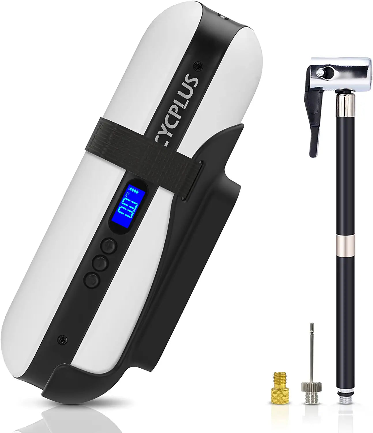 - RECHARGEABLE BATTERY: This air pump for bike and car tires (even for bike shock) comes with a powerful Li-Ion rechargeable battery, which can be used as a power bank for Android and IOS devices. There is a practical micro-USB and the charging time is only 2.5h, it also provides a customized bike mount.