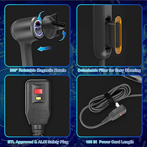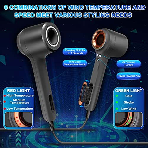 - ✅【Superior Function】 360° rotatable magnetic molding nozzles; Two magnetic concentrator nozzles are equipped for fast drying and precise styling. A removable filter and intelligent self-cleaning; Ultra-small hole filter to prevent dust and hair from being sucked inside the hair dryer, affecting the use of the hair dryer function.Over heat protection and power-off memory function; Standard US ALCI safety plug for auto leakage protection.