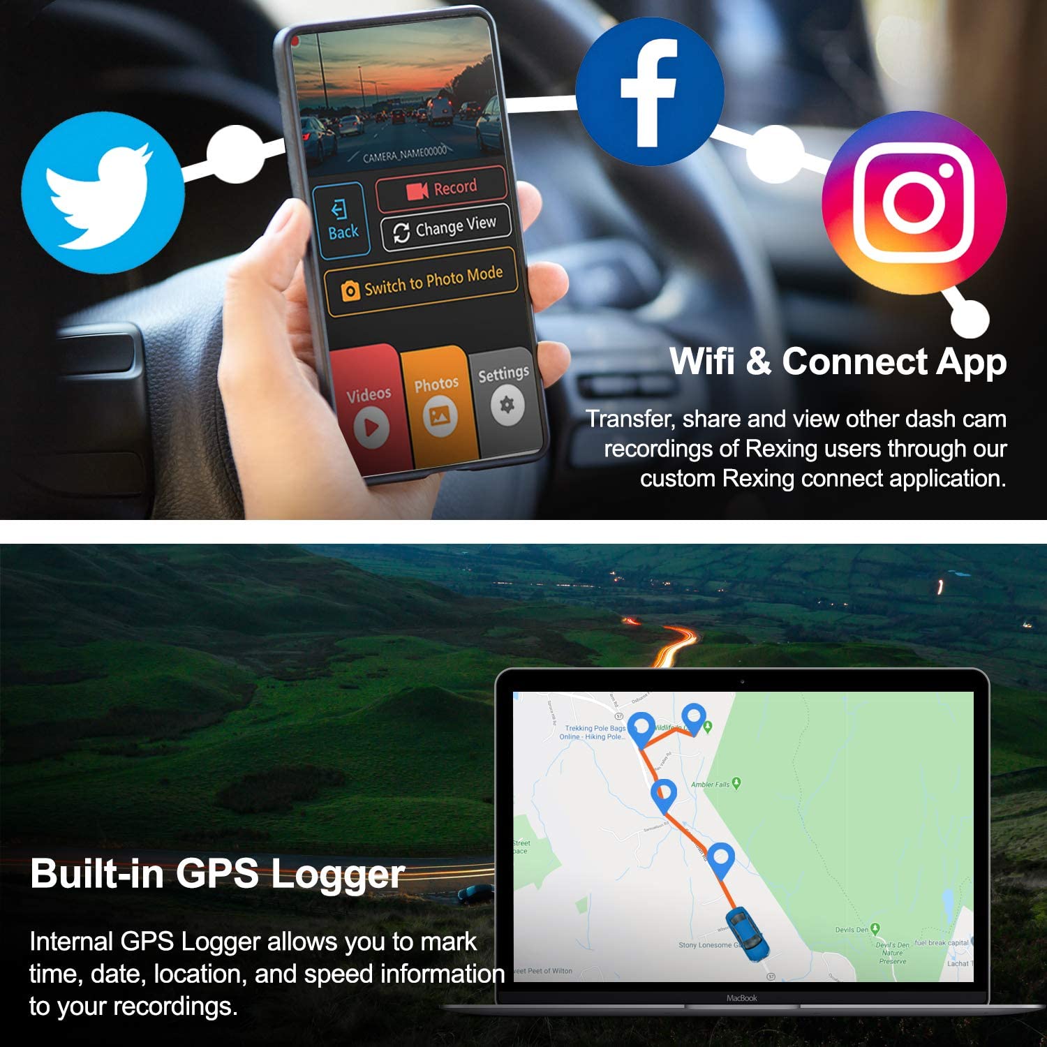 - BUILT- IN GPS, MOBILE APP & VOICE CONTROL – Use our mobile App to view and manage dash cam recordings instantly on your iOS and android devices. By using the app you can download your recorded 4k videos directly to your smart phone and easily share these on social media. GPS accurately records your driving location and speed. View your driving route and tracker on google maps via Rexing GPS Player. Simply Control It with Your Voice to finish your photo/video taking tasks and more, all hands-free