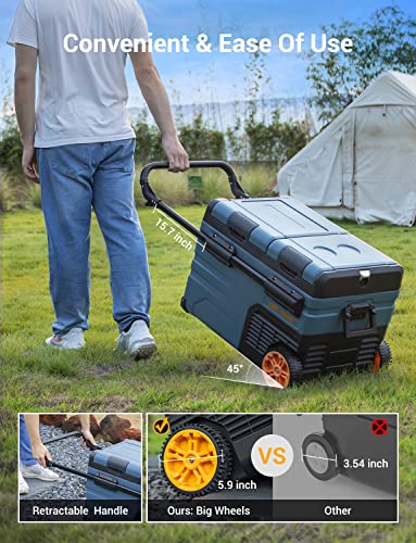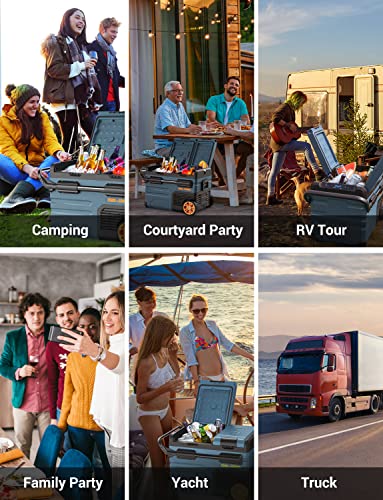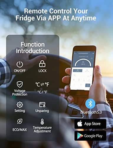 - [APP & Manual Control] This electric car fridge can use wireless connection and operate the car refrigerator in your mobile APP(NOTE: it can only connect 1 mobile phone at one time). Intelligent temperature control function can meet the required temperature of various ingredients. (It is recommended to refrigerate the food or drink before putting it in the refrigerator for better effect)