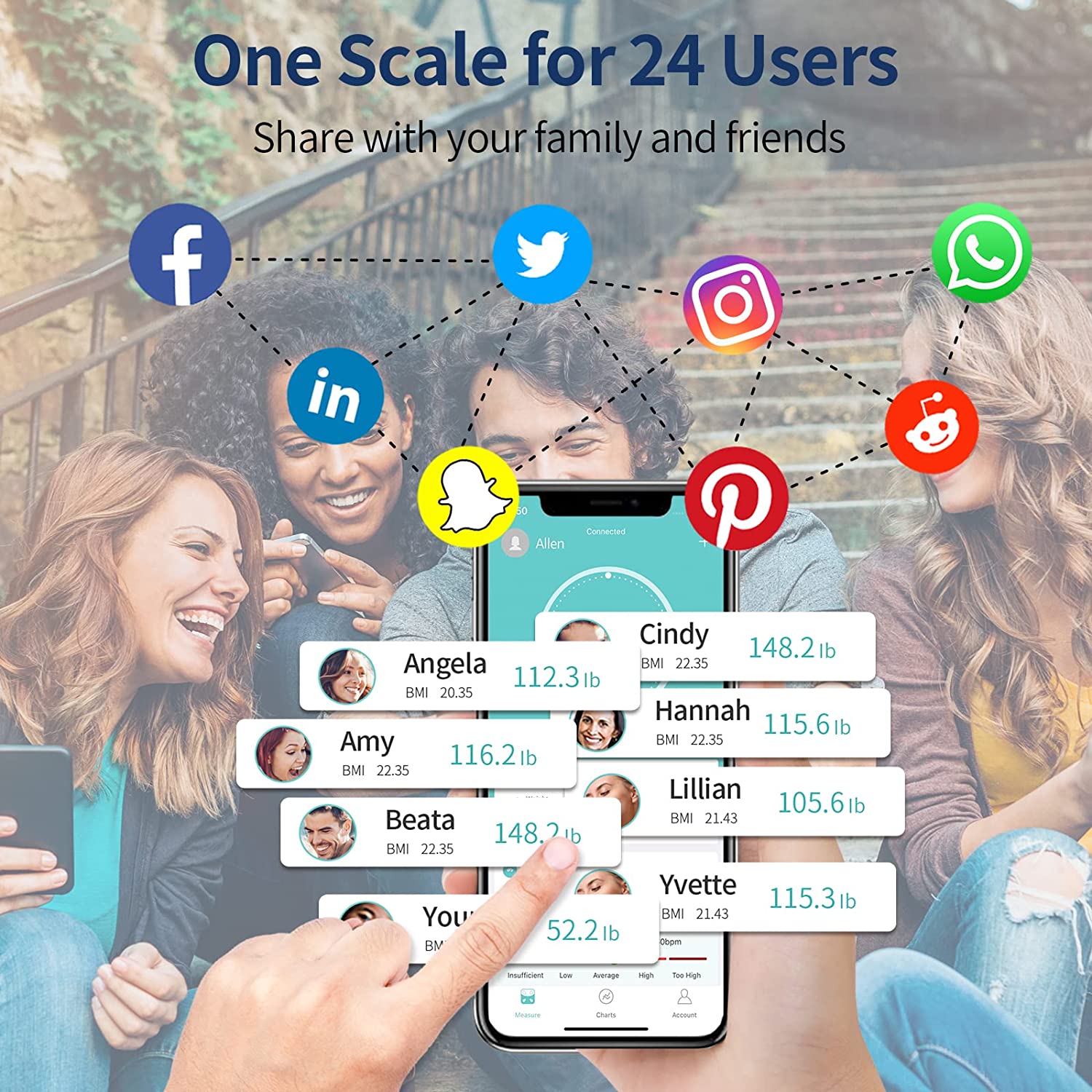 - One Bathroom Scale For 24 Users: You can create up to 24 member profiles in a single APP account. It’s smart enough to automatically recognize who steps on, each user will receive the data on their own devices conveniently. Baby mode make it possible to track the youngest members. Great for family & friends, bodybuilders, or everyday use. Baby mode will help you track your baby weight growth conveniently.