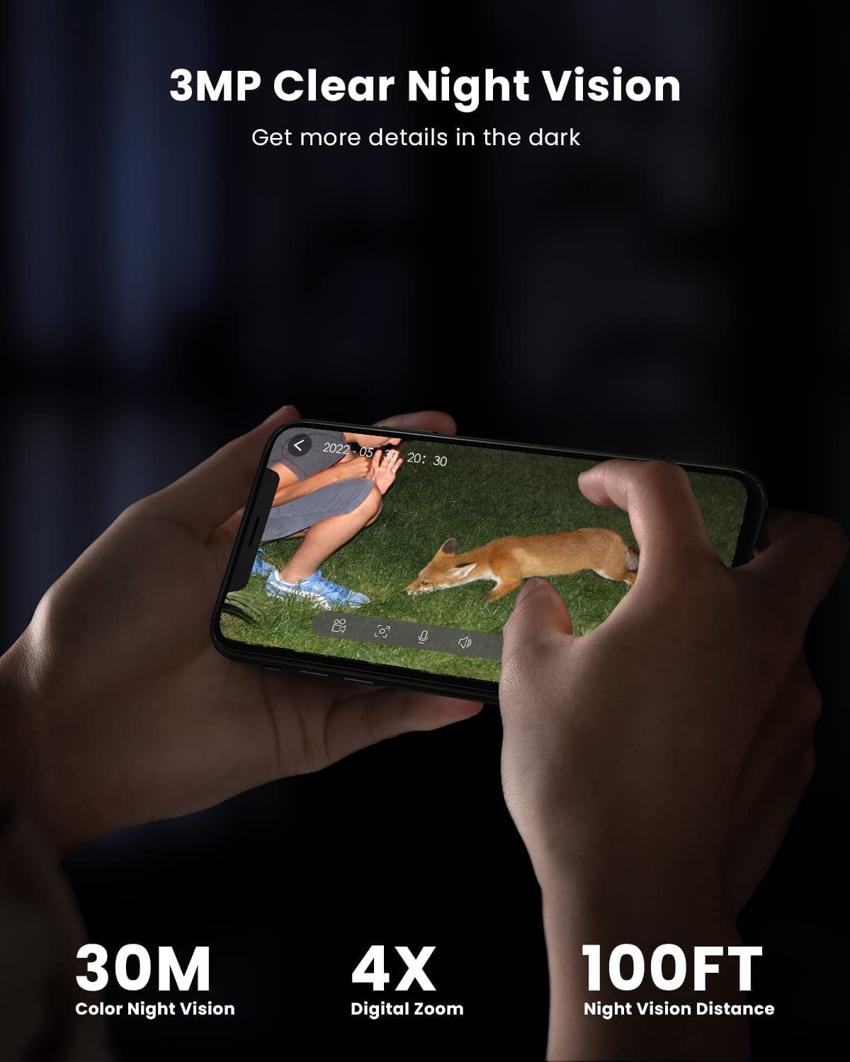 - ️【2K/3MP FHD & 100ft Color Night Vision】IP65 Weatherproof ieGeek camera for home security is equipped with upgraded HiSilicon chip and color sensor 1/3 CMOS, which can provide 2K/3MP images and videos regardless of weather conditions. 4 infrared lights automatically sense the ambient light and switch to night vision mode, the night vision distance can reach 100ft/30m.