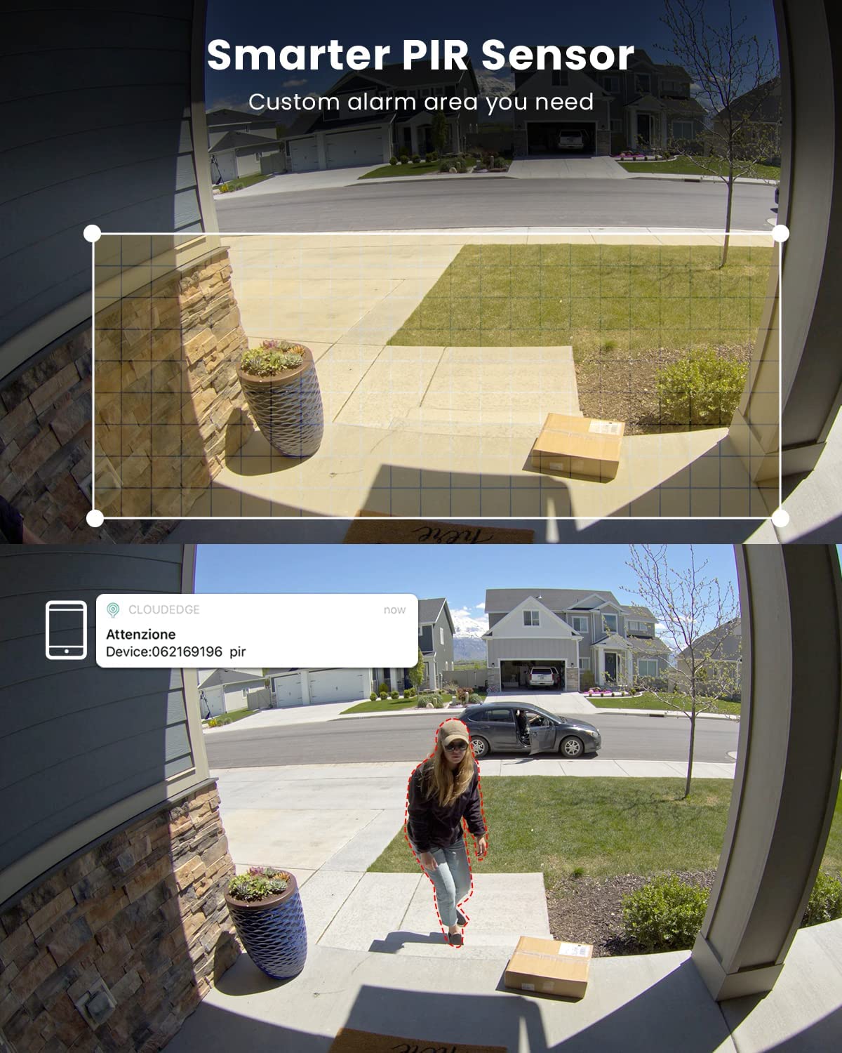 - 【Rotating PTZ Camera & RIP Motion Detection】ieGeek wireless security camera can easily control the 4x digital zoom camera with 355° Pan 120° Tilt through the"CloudEdge"APP.The upgraded RIP motion detection AI algorithm enhances humanized recognition and reduces false alarms. You can customize the alarm plan/adjust 10-level alarm sensitivity/receive timely alarm notifications through the APP.