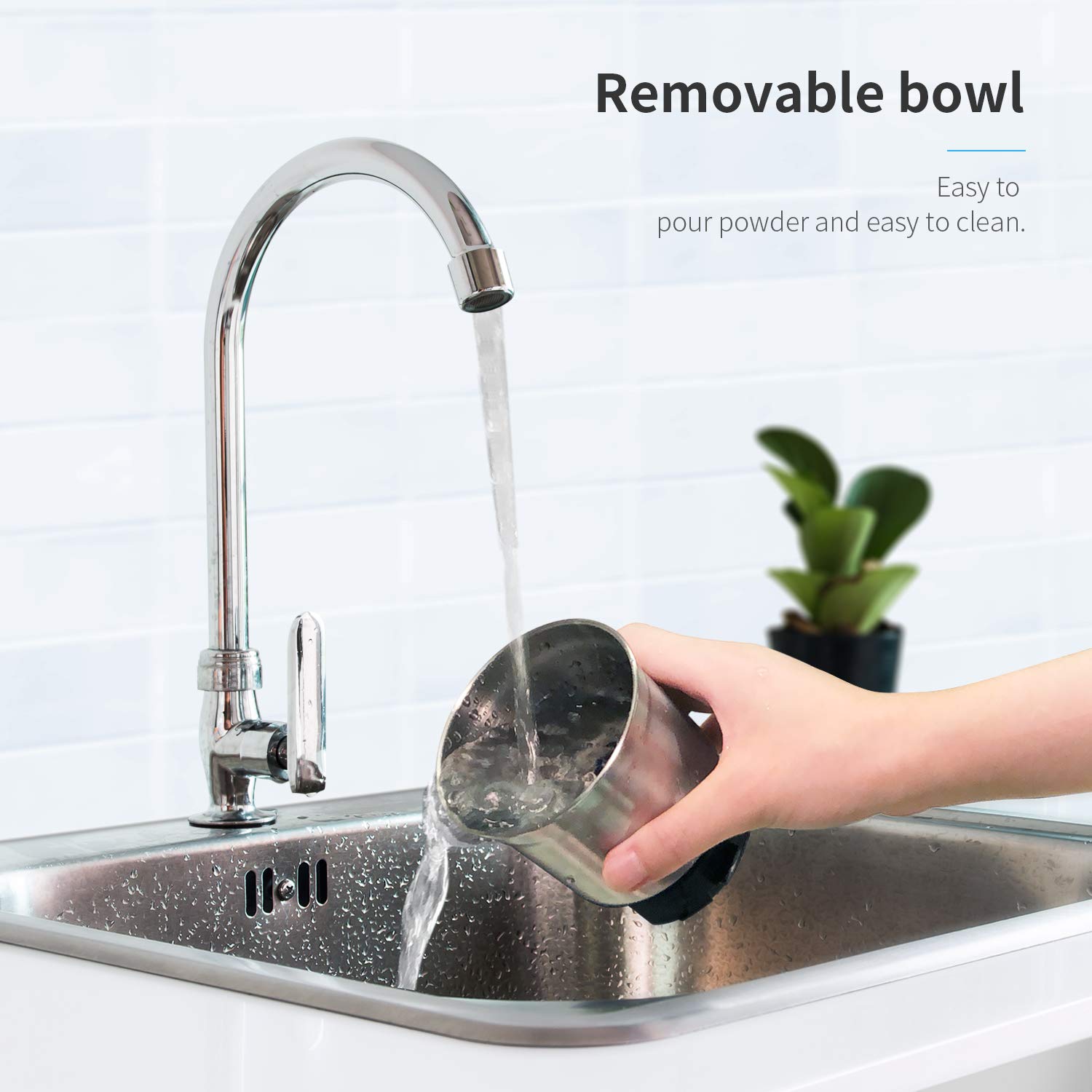 - No flavor contamination. One grinder bowl with 2 blades for dry grinding like coffee bean and grains; one chopper bowl with 4 blades for wet grinding like garlic and basil. Bowls are removable and easy to transfer powder and to clean.