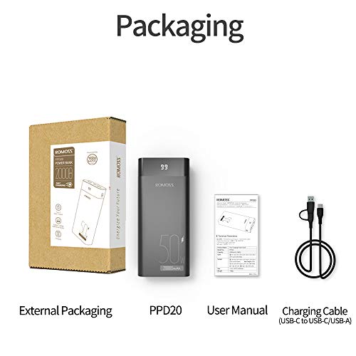 - Package Includes: 1 x ROMOSS Power Bank (Model: PPD20),1 x 2-in-1 USB Charging Cable (USB-C to USB-C/USB-A),1 x User Manual (Note: Adapter is NOT included.)