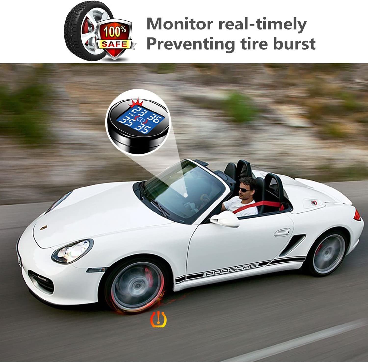 - 【Space-Saving with Cigarette Plug】Powered by its cigarette lighter plug, the TPMS is low power consumption and takes very little space in your car. Simply plug and mount the external tire pressure sensors so you can keep an eye on your tires’ conditions for safe driving.