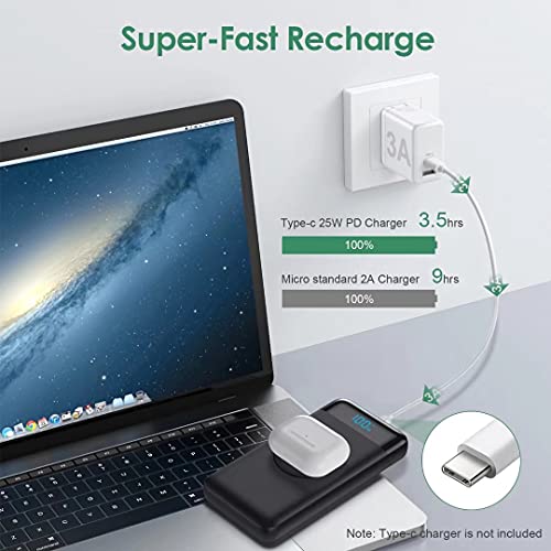- 25W PD Fast Charging & QC 4.0 Fast Charing Output: portable charger with 25W power delivery 3.0 output and quick charge 4.0 output, combine to deliver an optimized charge to your devices at up to 25 W. Fast charging for cellphone up to 100% within 1.5 hours.USB-C fast charging cable and PD wall charger full charge this portable charger within 3.5 hours.