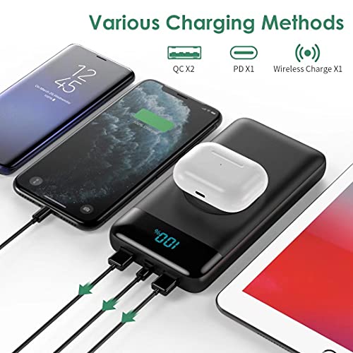 FOCHEW Wireless Portable Charger Power Bank 30,800mAh - 15W Qi Wireless Charing & 25W PD Quick Cell Phone Charger, 2 Input + 4 Output External Smart LED Display USB C Battery Pack Compatible with iPhone 12 Pro Max / 12 / 12 Pro /11 , Samsung phone. ★★★Combines Qi Wireless and Wired 30,800mAh Power Bank, includes Power Delivery USB-C 4.0 and Quick Charge 4.0 output technology for more fast charging speeds.★★★Specifications:Capacity: 30,800mAhUSB Input: 25W PD 3.0 5V/3A, Micro USB 5V/2.1A;USB Output: PD3.0 5V/3A, Dual QC 4.0 5V/3AWireless Output: 5W, 7.5W, 10W, 15WMax Power Output: 25WSize: 5.9*2.9*0.6 Inch (same lenght with iphone 12)Weight: 360 gPackage Content:1x FOCHEW 2021 Version 30,800mAh USB C Power Bank (25W PD+QC4.0)1xMicro USB Cable1xUser ManualImportant Notes:1: Please charge power bank in full before you first using it.2: Pls Remove your phone case (case thickness >5mm) when you use wireless charing your phone.24 Months Warranty FOCHEW Team provides 60 Days Money Back. 24 Month warranty and friendly easy-to-reach support. Enjoy this Zero risk free purchase by clicking the yellow "Add to Cart" button.